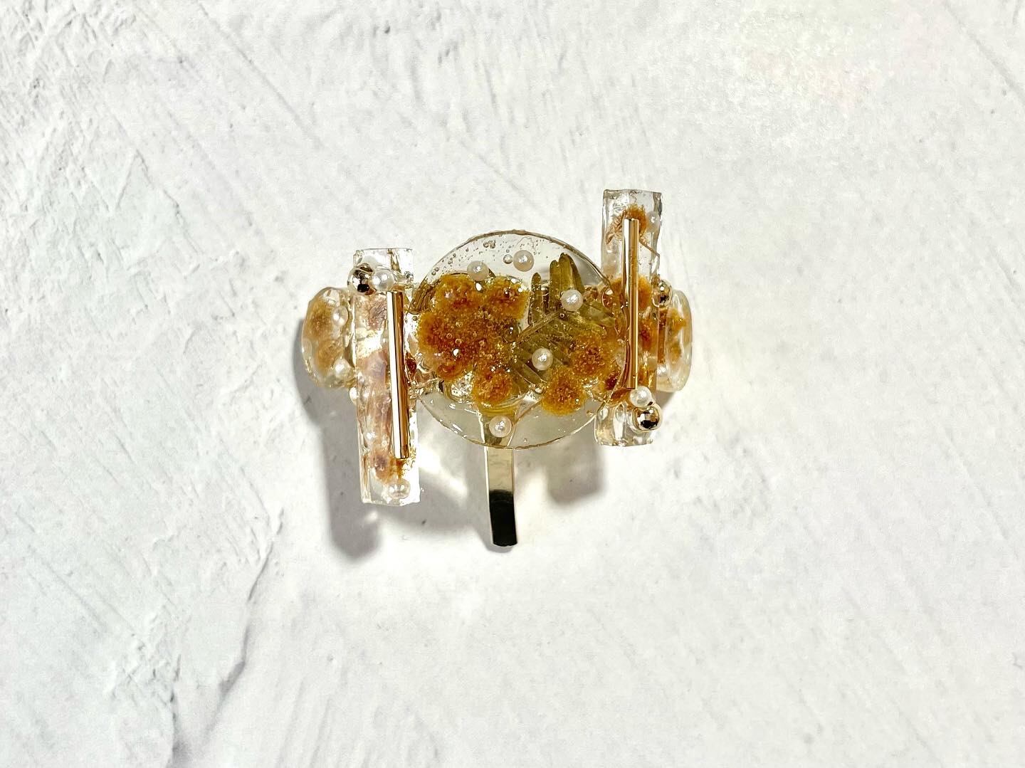 こちらはドライフラワーミモザを使用したポニーフックとなります❀